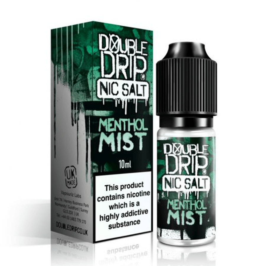 Double Drip Menthol Mist contains nicotine salts, which help you overcome cravings quicker because they are absorbed into the bloodstream faster. Additionally, because nic salts provide a much softer throat hit, you can use higher nicotine doses without experiencing a harsh throat hit.
