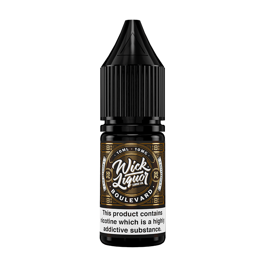 Wick Liquor Boulevard Shattered uses nicotine salts, which satisfy your cravings quicker as the nicotine is absorbed faster. Nic salts also give a much smoother throat hit meaning you can use higher nicotine strengths without having a harsh throat hit.