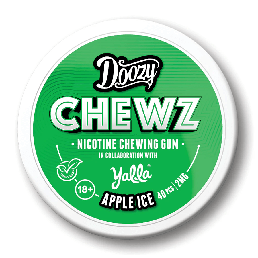 Doozy Chewz nicotine chewing gum is a discreet alternative to vaping and traditional cigarette smoking. Chewz nicotine chewing gum is made in the UK with 100% vegan ingredients, designed with slow release technology to effectively deliver nicotine to your bloodstream via your mouth.