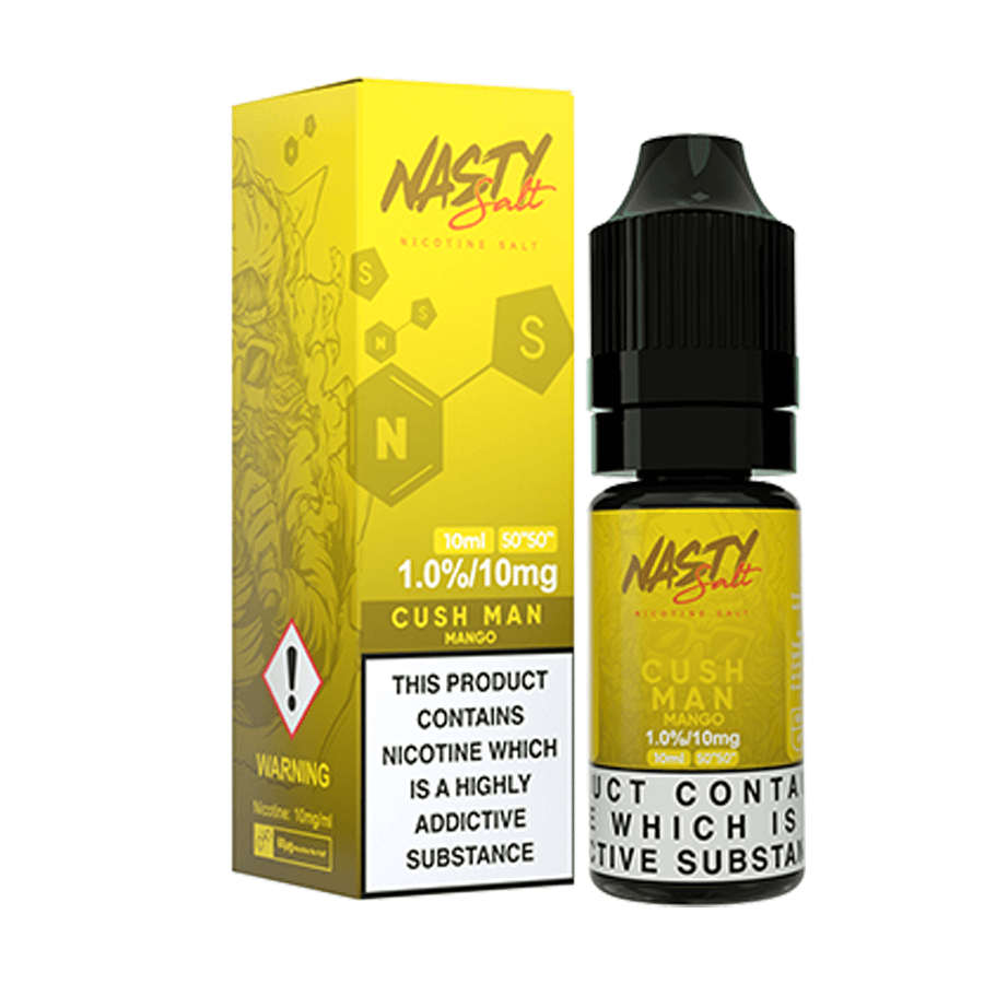 Nasty Juice Cushman uses nicotine salts, which satisfy your cravings quicker as the nicotine is absorbed faster. Nic salts also give a much smoother throat hit meaning you can use higher nicotine strengths without having a harsh throat hit.