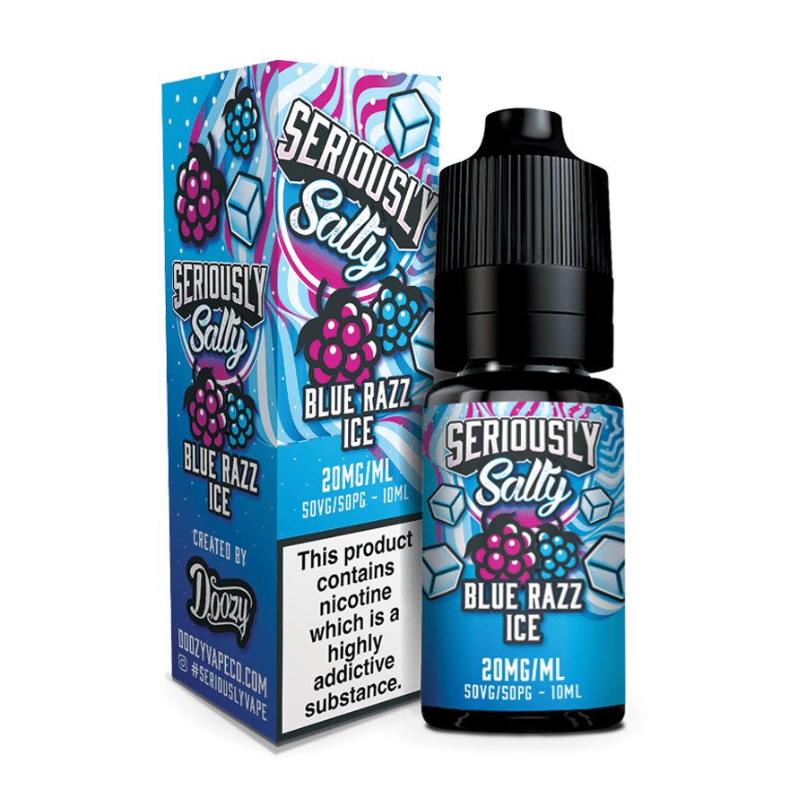 Blue Razz Ice Nic Salt E-Liquid by Seriously Salty is an amazing concoction of blue raspberries wrapped in a nice sweet candy with a menthol twist…insanely delicious!